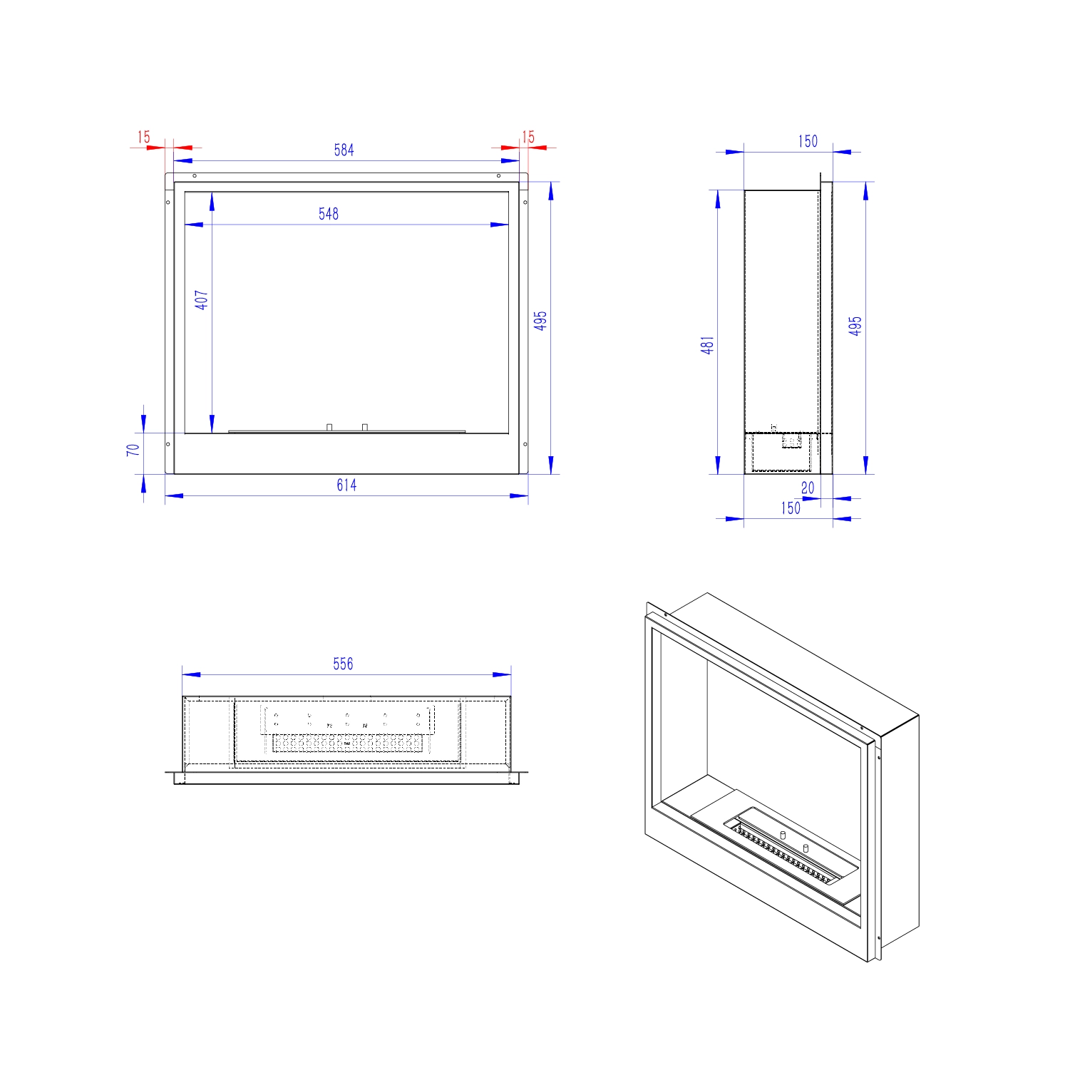 1-zijdige bio-ethanol inbouwhaard 600