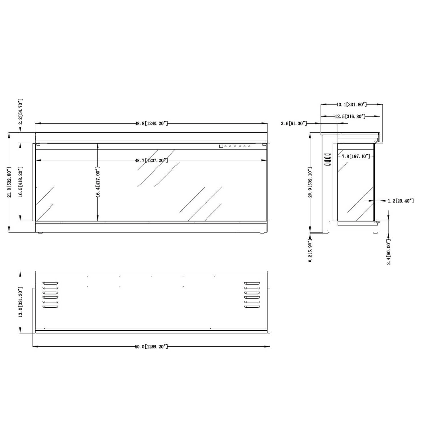 3-zijdige inbouw elektrische haard
