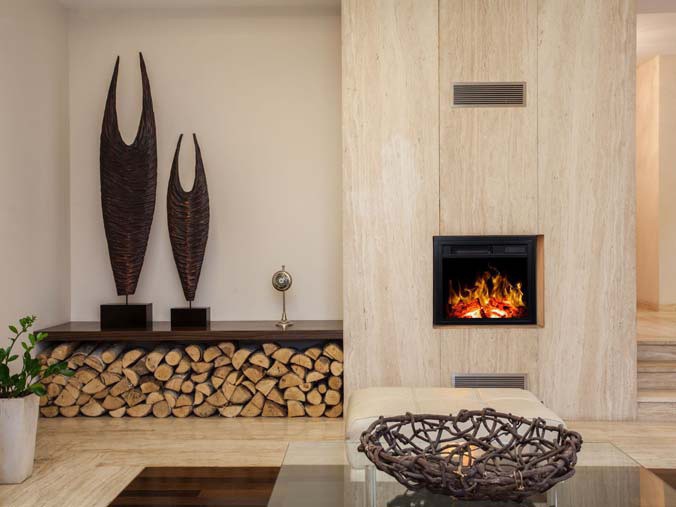 Deze elektrische haard maakt gebruik van de prijswinnende Evoflame technologie van Evonic Fires.